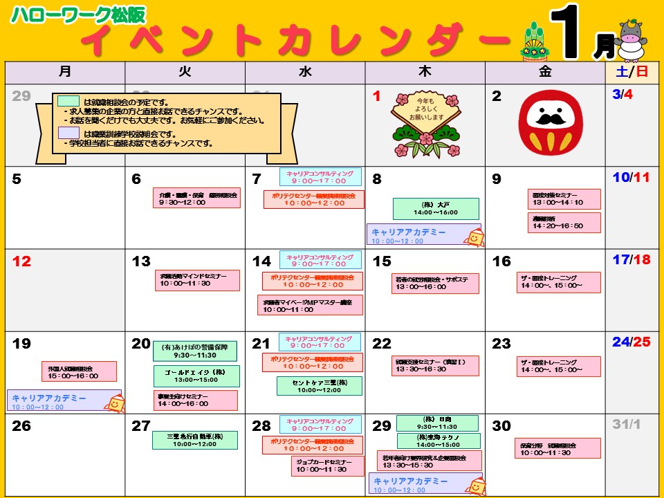 ※ミニ面接会の対象求人については、当日変更や取消しとなることがあります。ご了承ください。