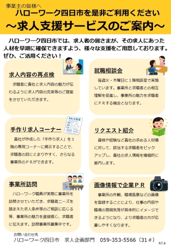 ~ハローワーク四日市 求人支援サービスのご案内~