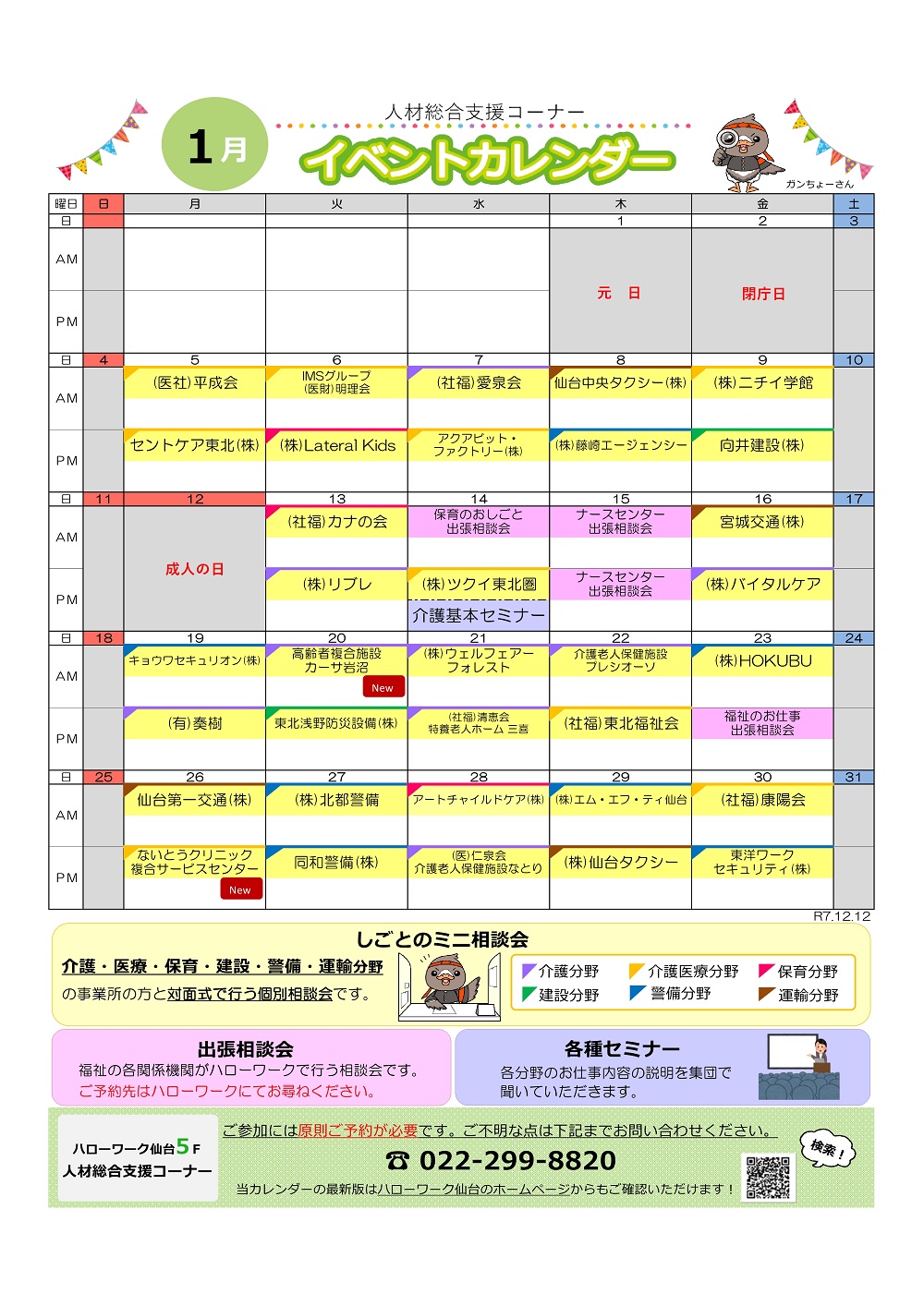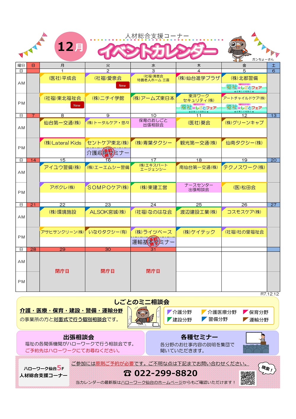 今月・来月にハローワーク仙台で行われるイベントを掲載しております。(随時更新)