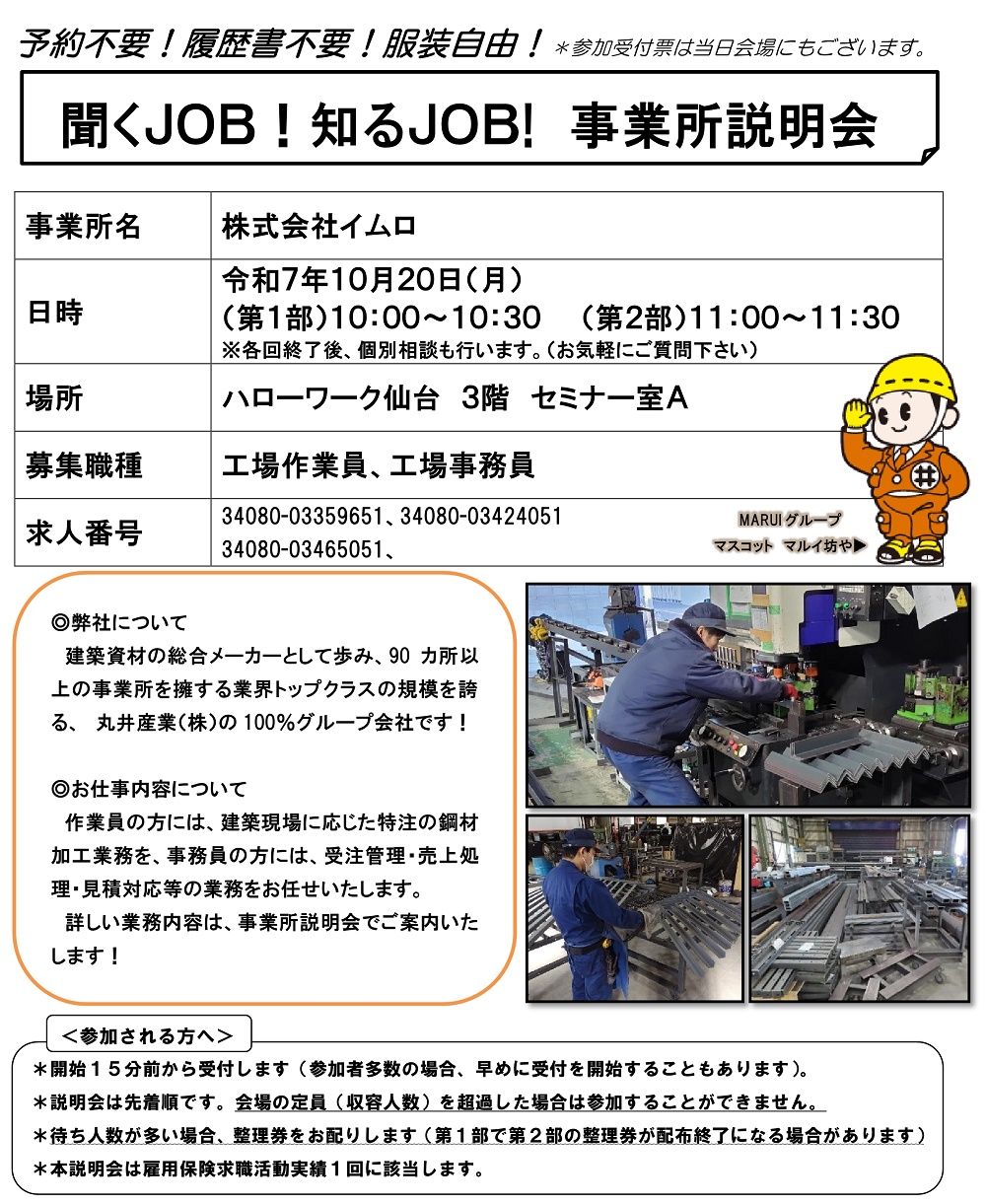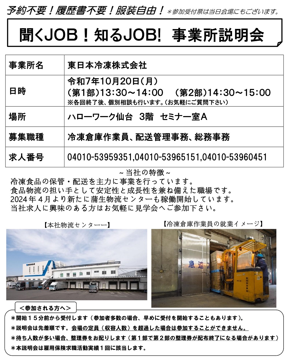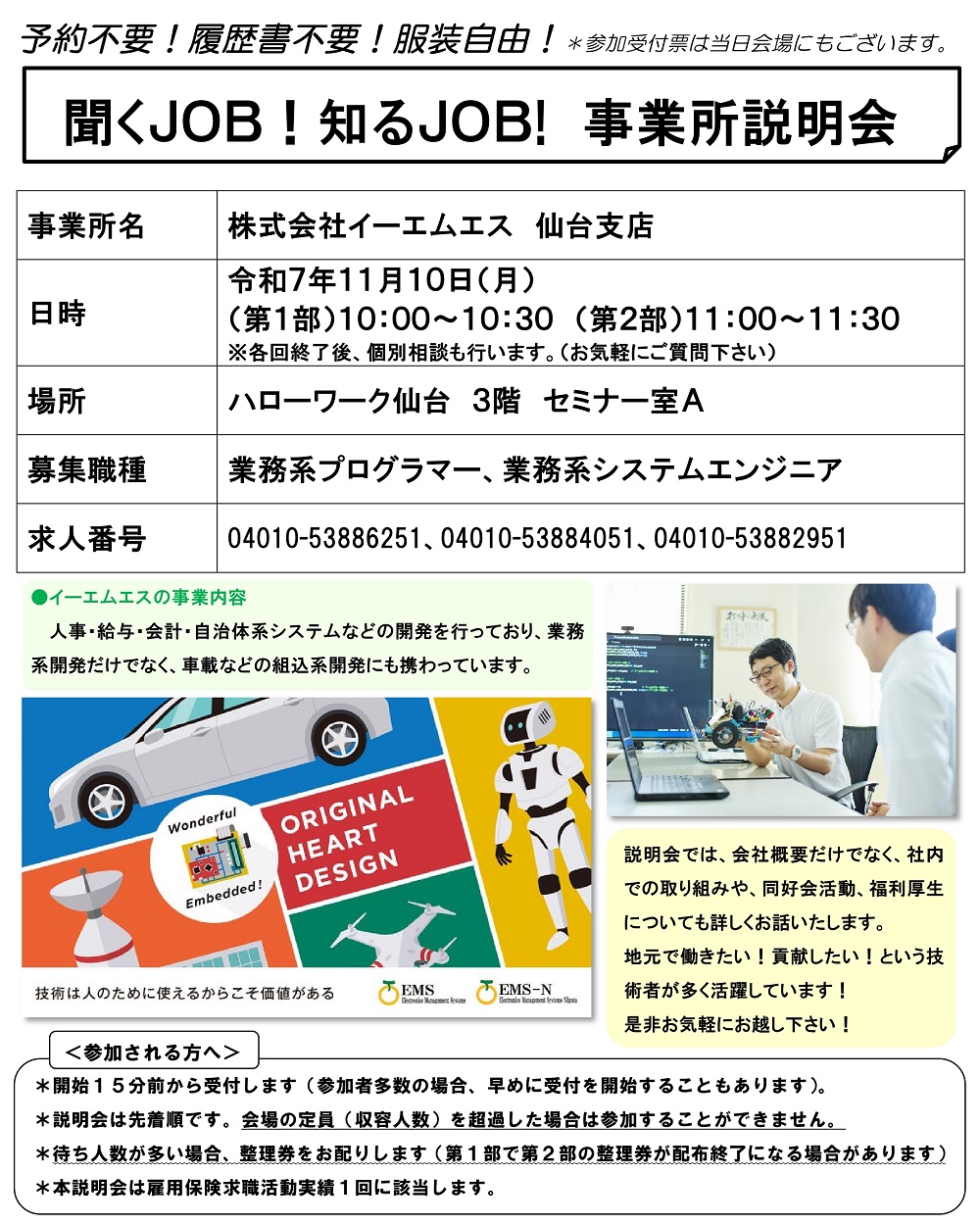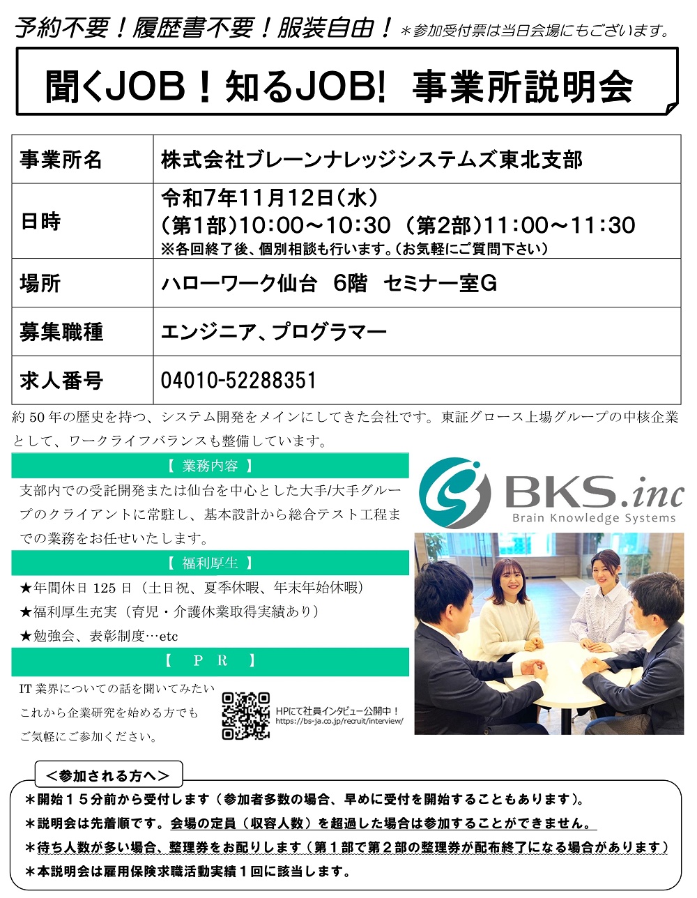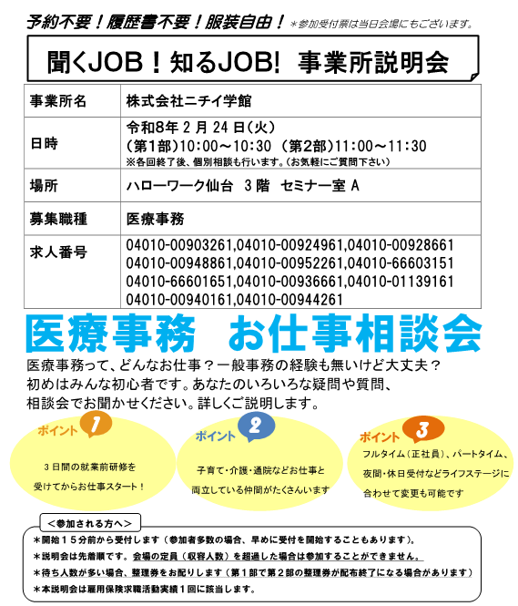 ハローワーク仙台では、お仕事をお探ししている方向けに、事業所について幅広く知っていただくことを目的とした説明会を開催しています!