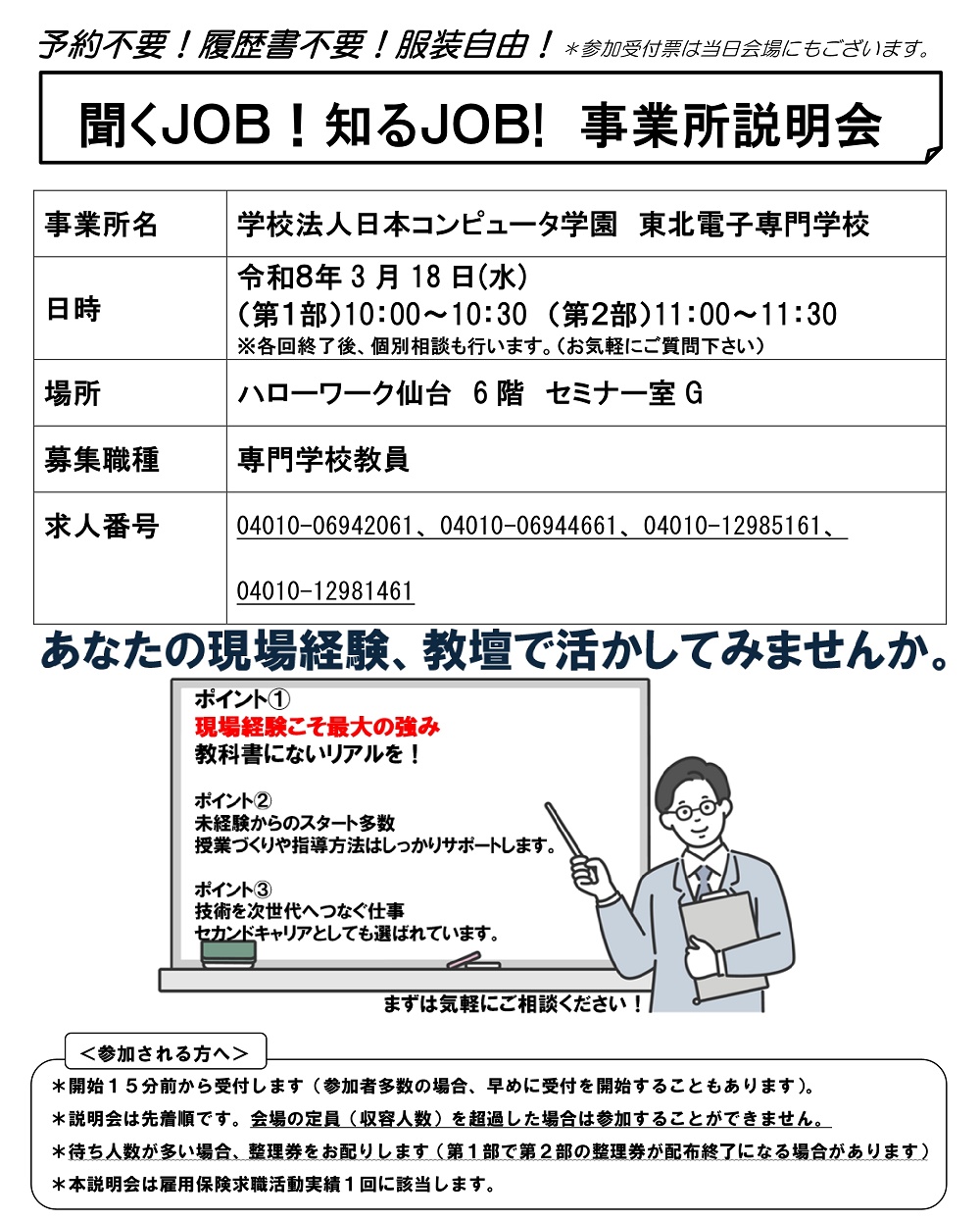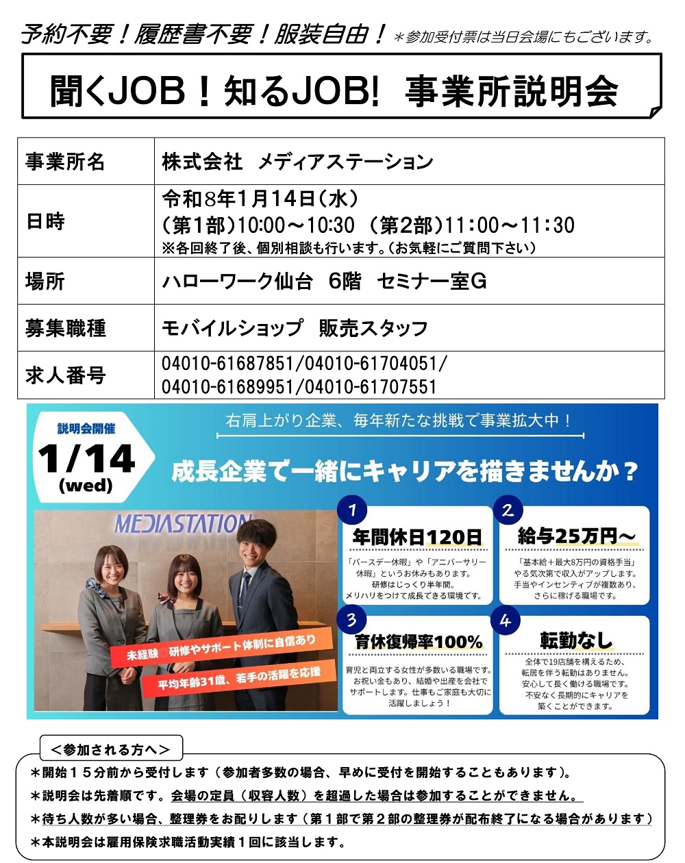 面接会ではありませんので、お気軽にご参加ください。