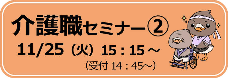 ●介護セミナーは①、②ともに同じ内容です。 ①、②連続での参加はできませんのでご了承ください。