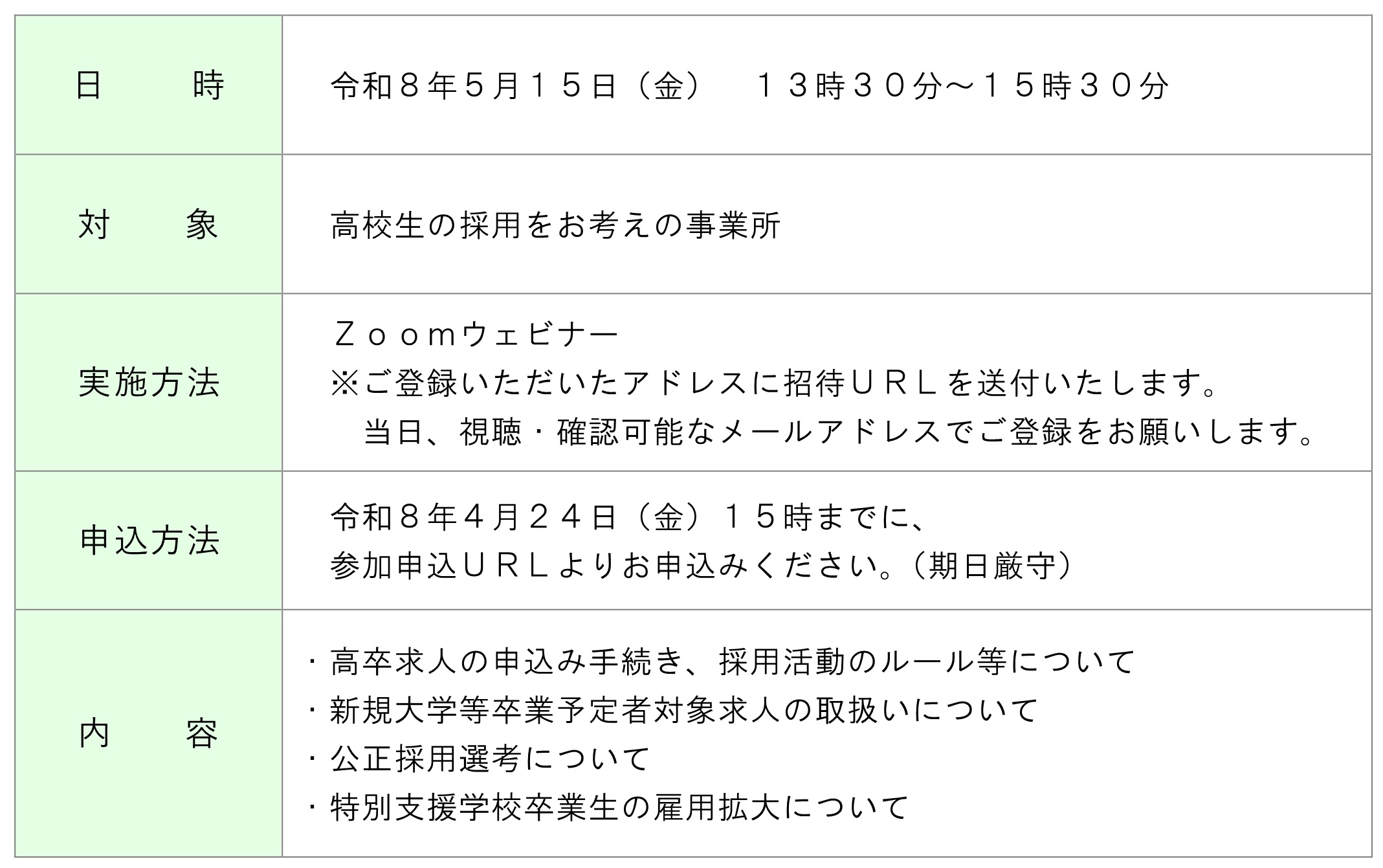 高校生の採用をお考えの事業所様向けに、求人説明会を開催いたします。