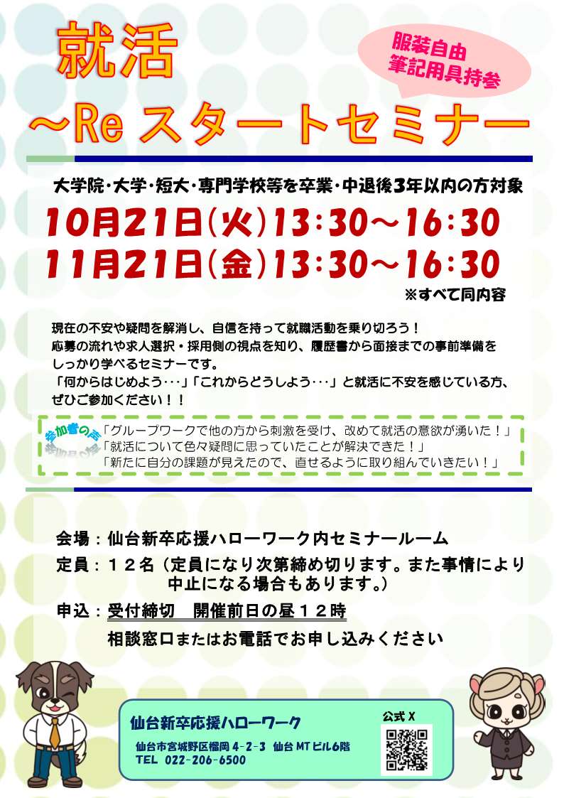 ☆実践的なセミナーを受講して、希望の就職を叶えるための「就活スキル」を習得しましょう! ※人気のセミナーはすぐ満員となるので、早めにお申し込みください ※チラシをクリックするとPDF形式データで詳細が確認できます