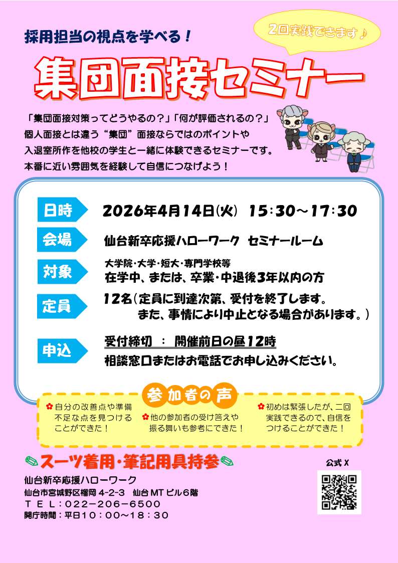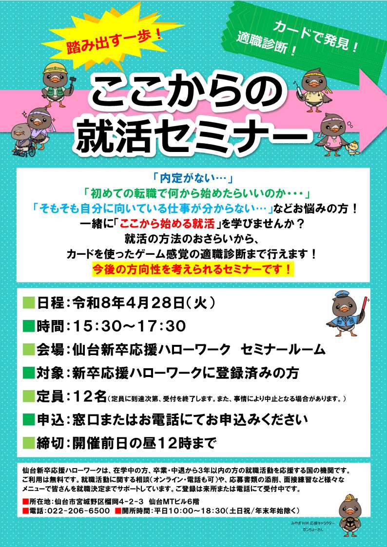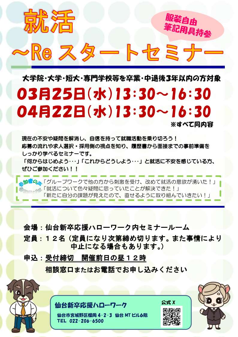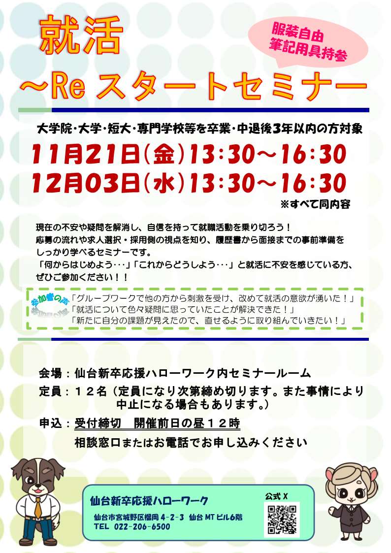 ☆実践的なセミナーを受講して、希望の就職を叶えるための「就活スキル」を習得しましょう! ※人気のセミナーはすぐ満員となるので、早めにお申し込みください。 ※チラシをクリックするとPDF形式データで詳細が確認できます。