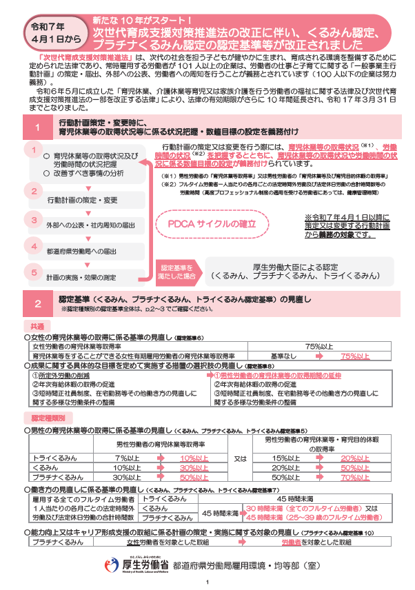 リーフレット「次世代育成支援対策推進法の改正に伴い、くるみん認定、プラチナくるみん認定の認定基準等が改正されます」