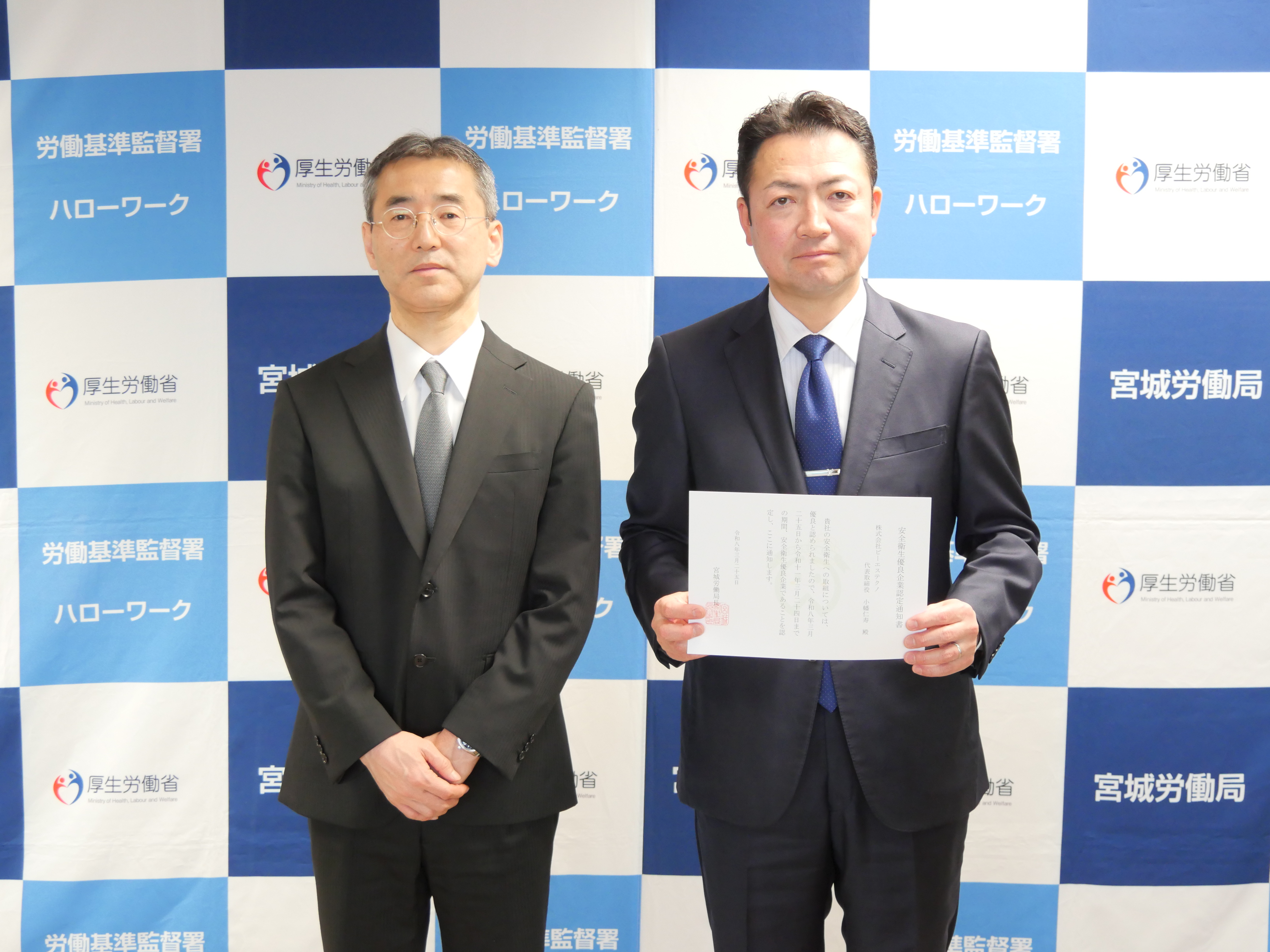 宮城労働局は、労働者の安全や健康を確保するための対策に積極的に取り組み、高い安全衛生水準を維持・改善している企業として、
