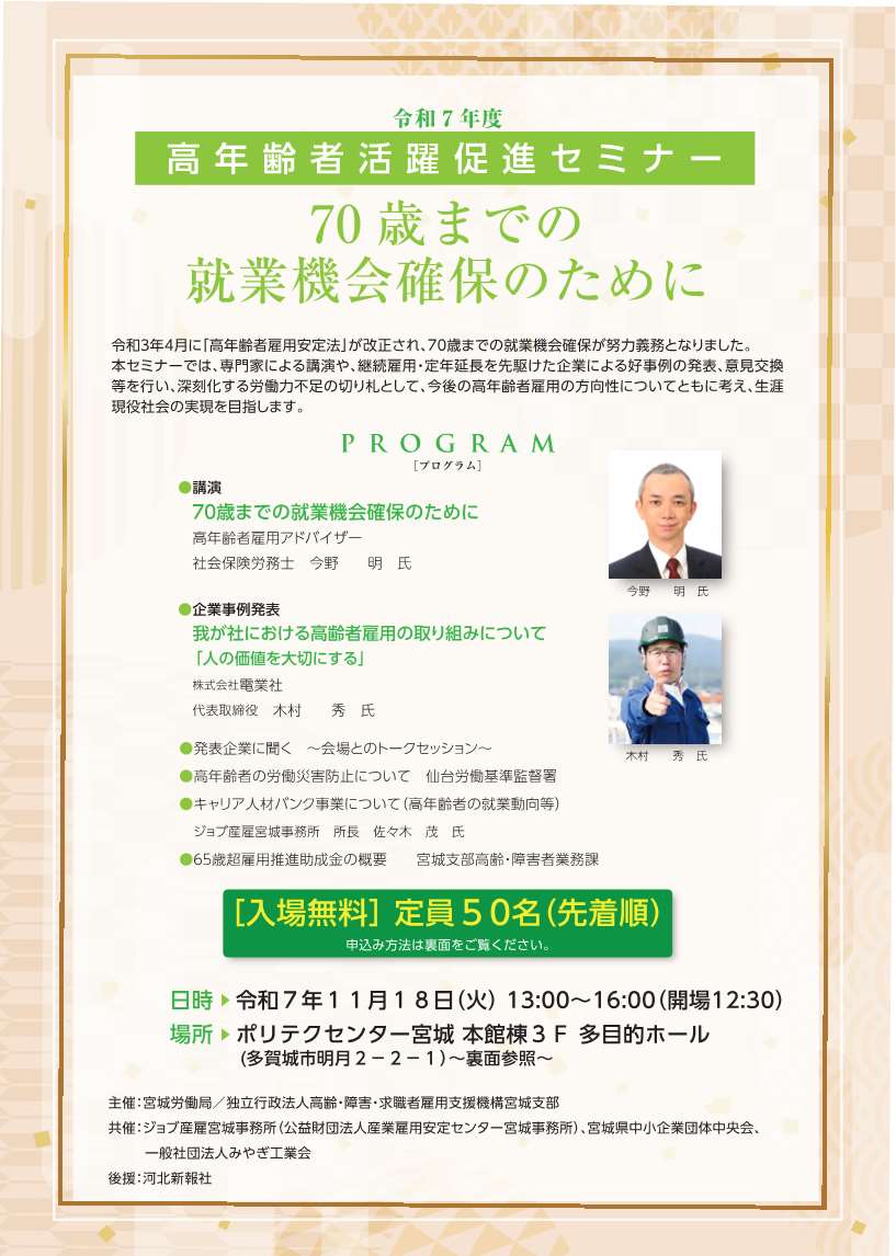 令和7年度 高年齢者活躍促進セミナー ~70歳までの就業機会確保のために~ 開催のご案内
