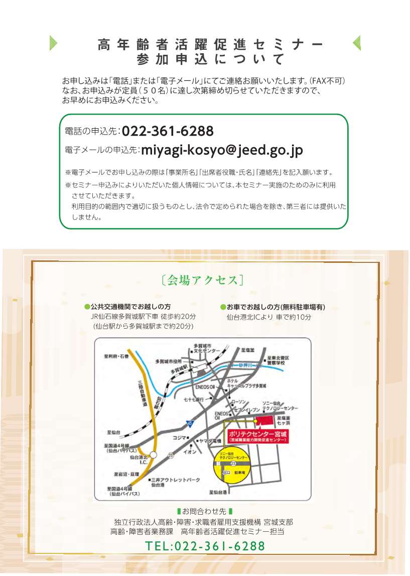 参加申込先▶独立行政法人 高齢・障害・求職者雇用支援機構 宮城支部