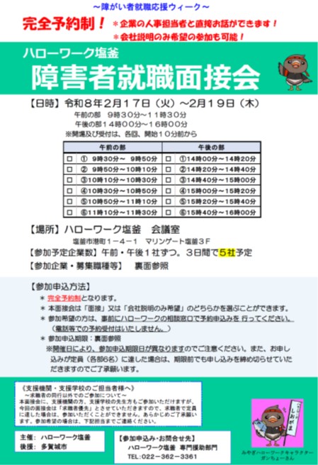 | 塩釜会場 | ハローワーク塩釜 障害者就職面接会 |