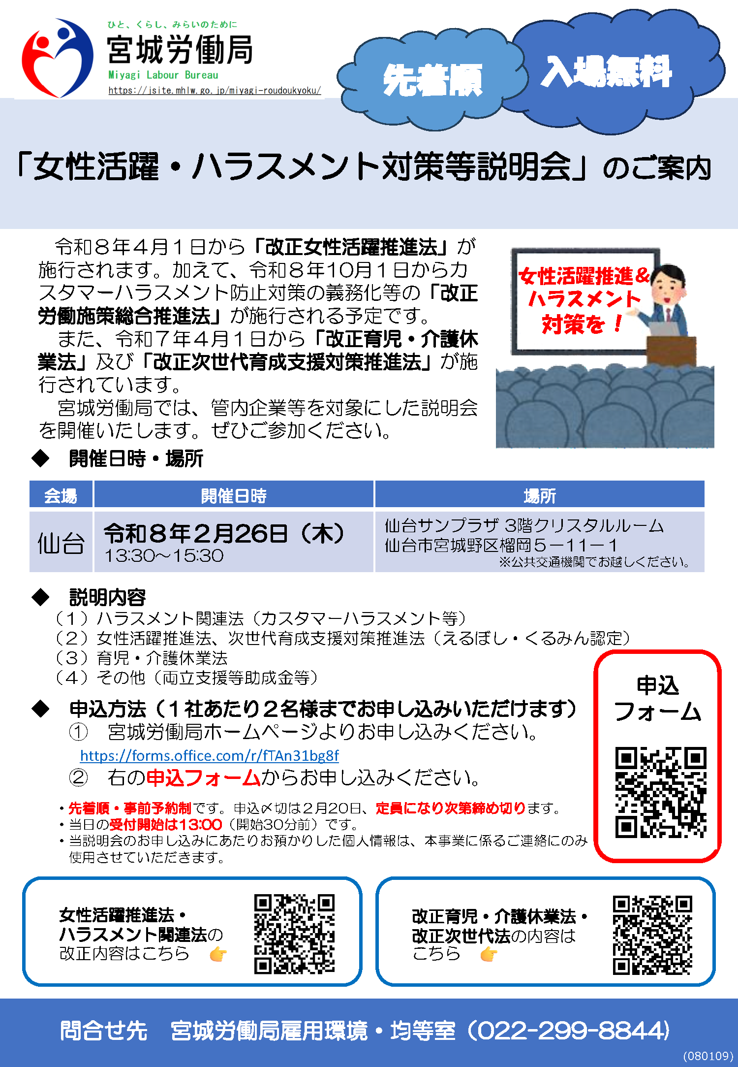 本ページでは、改正の概要や宮城労働局が行う説明会についてお知らせします。