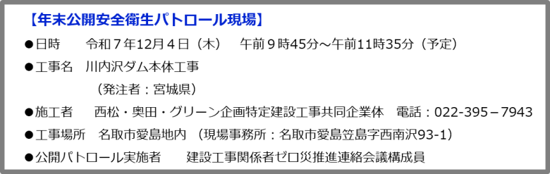 ~ 県内では宮城労働局長がダム堤体工事現場を巡視予定 ~