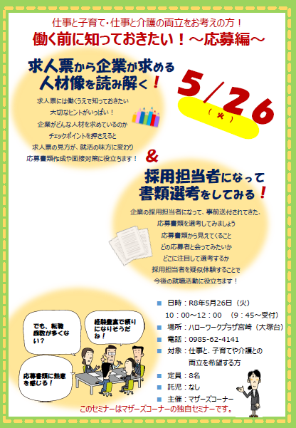 この記事に関するお問い合わせ先:職業安定部 職業安定課 TEL : 0985-38-8823