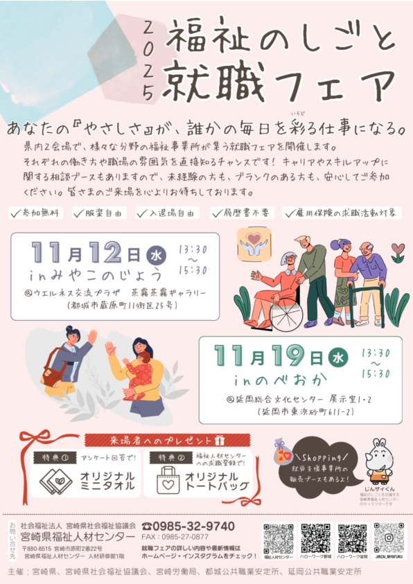 様々な分野の福祉事業所が集う就職フェアを開催します!
