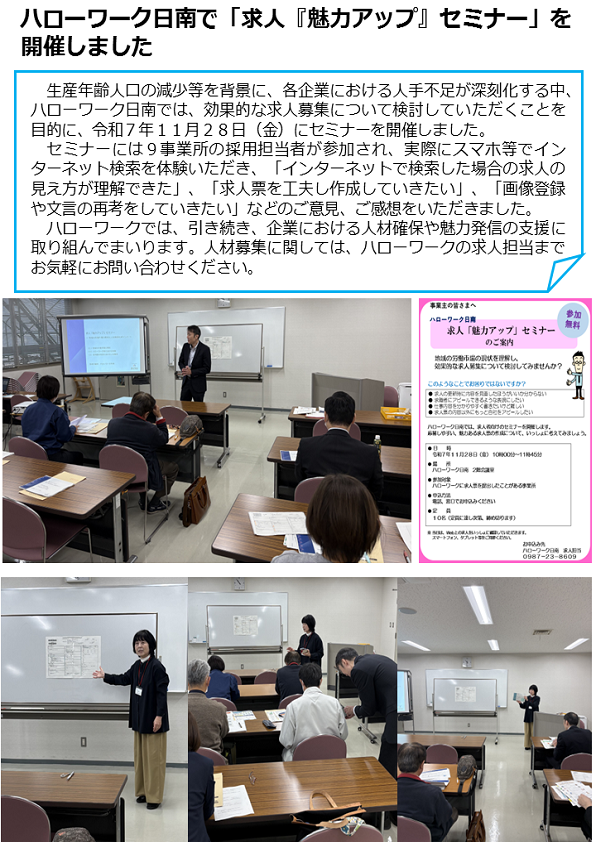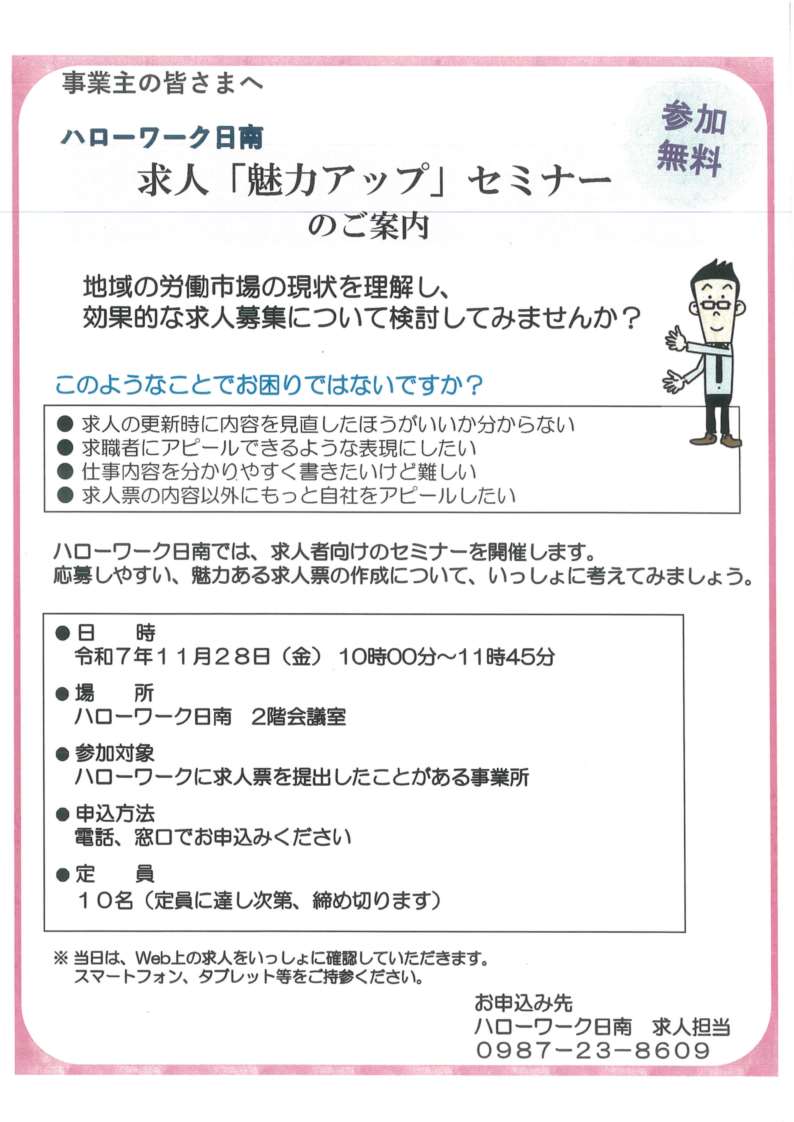 ハローワーク日南で開催のイベント・セミナーの情報を見ることができます。【随時更新】
