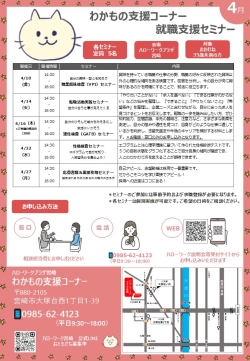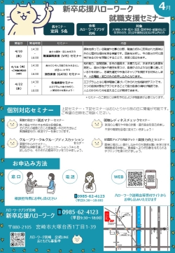 宮崎新卒応援ハローワーク・わかもの支援コーナーのセミナーでは、就職に役立つ情報をわかりやすくお届けしています。