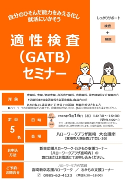 ※職業適性検査(GATB)セミナーは窓口・お電話でのお申し込みとなります。