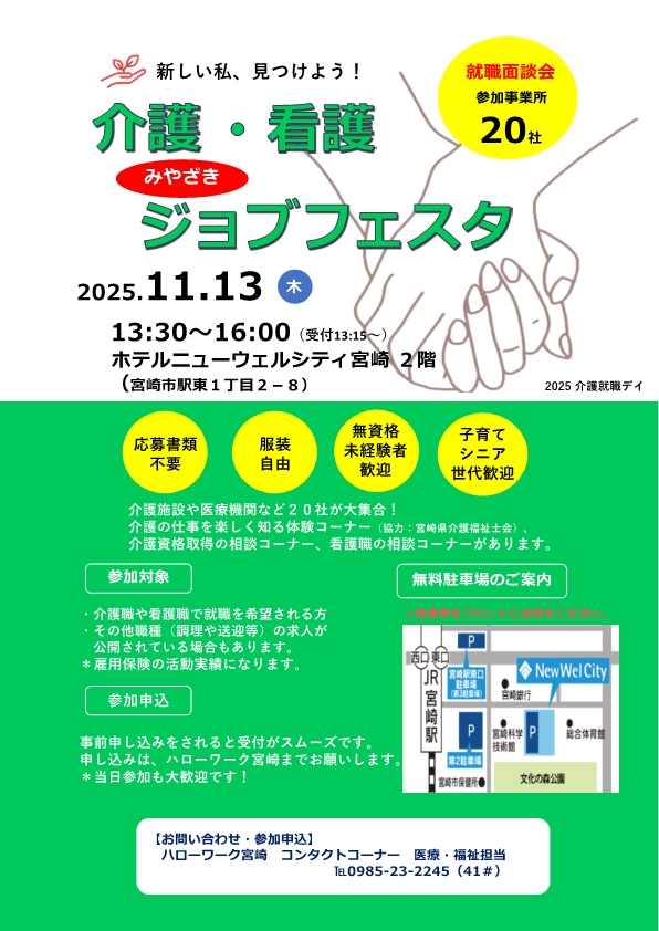 宮崎県内の介護施設・医療機関など 20社 が参加する就職面談会です。