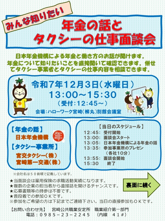 みんな知りたい「年金の話とタクシーの仕事面談会」