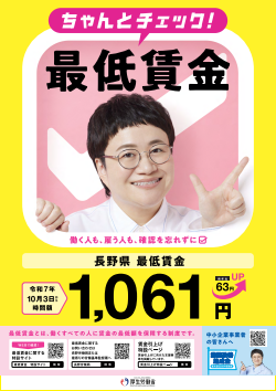 2025年09月03日 | 長野県最低賃金が改正されます ~10月3日から時間額1,061円に~ |