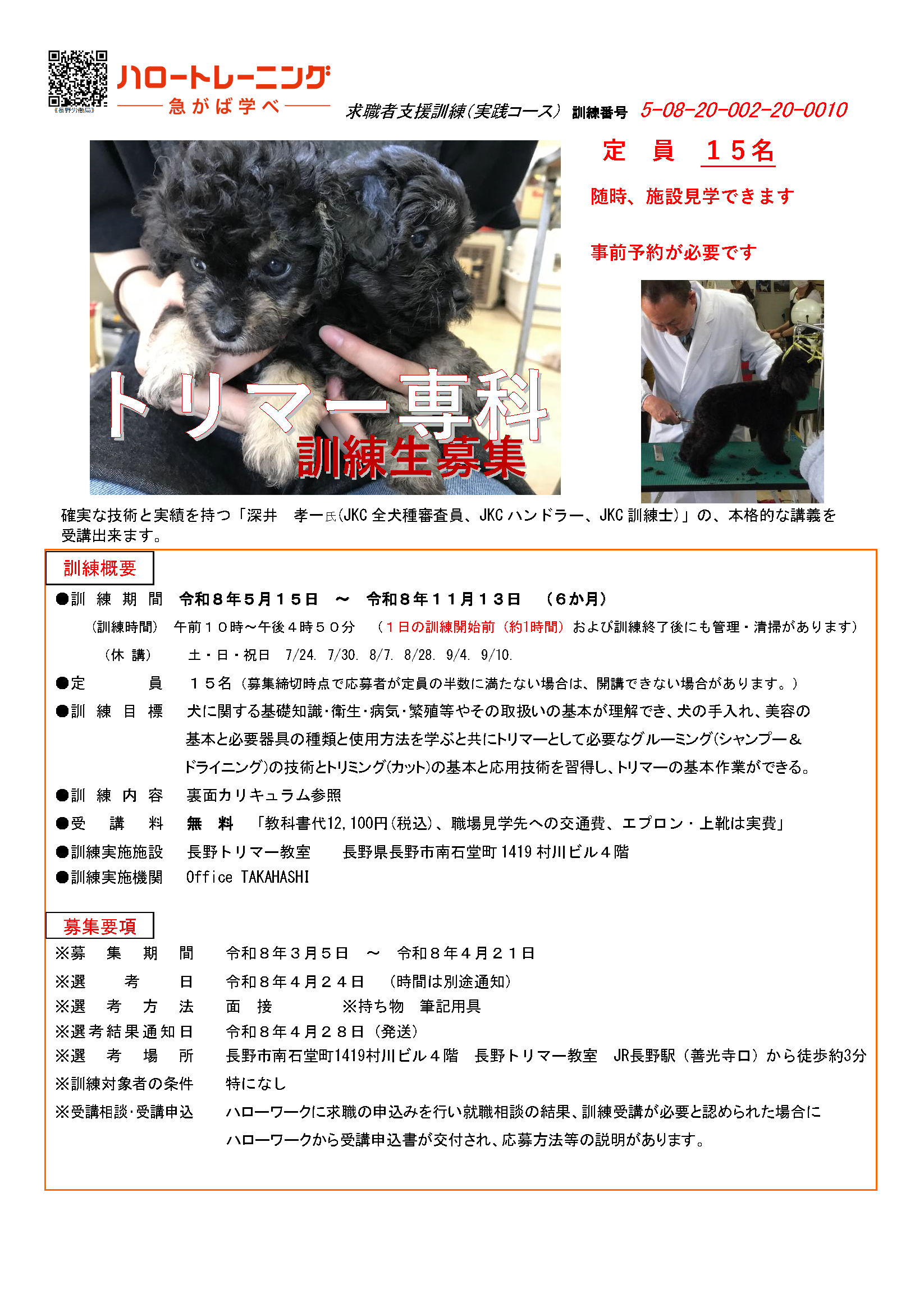 | トリマー専科(長野市)4/21締切 | ||