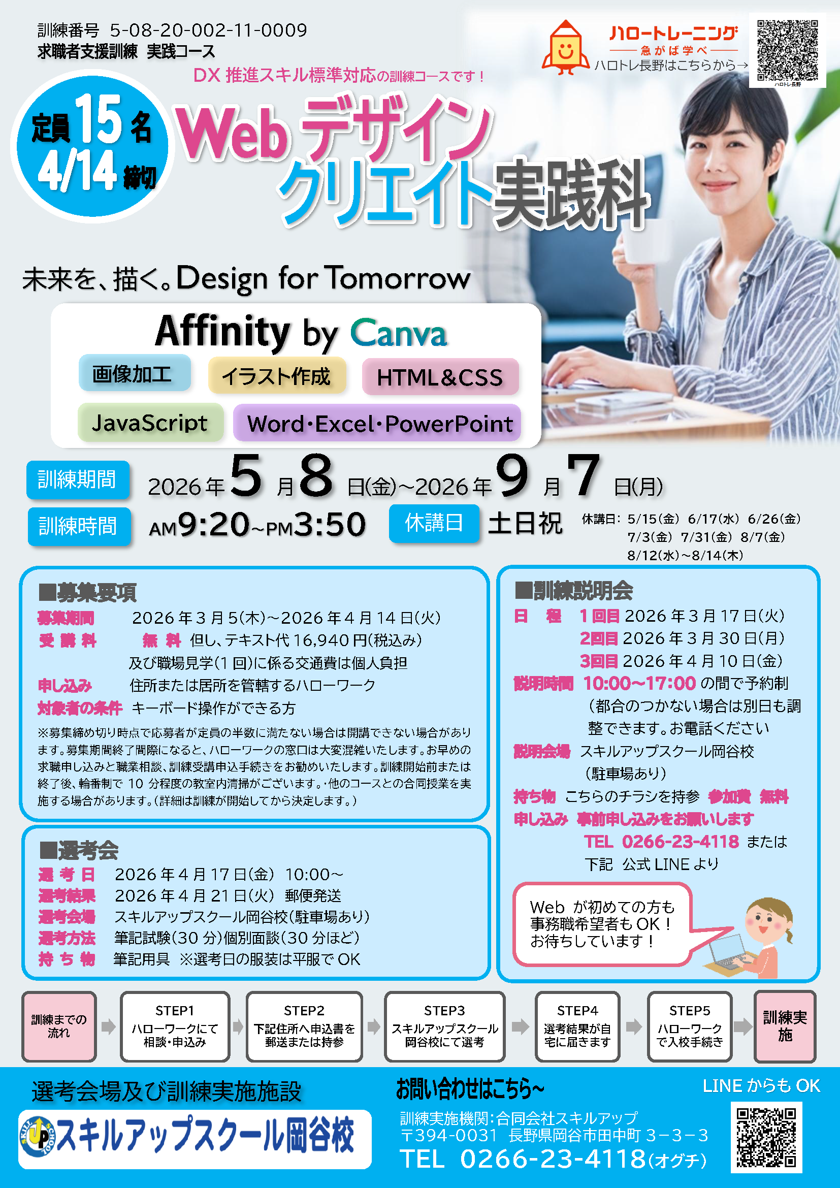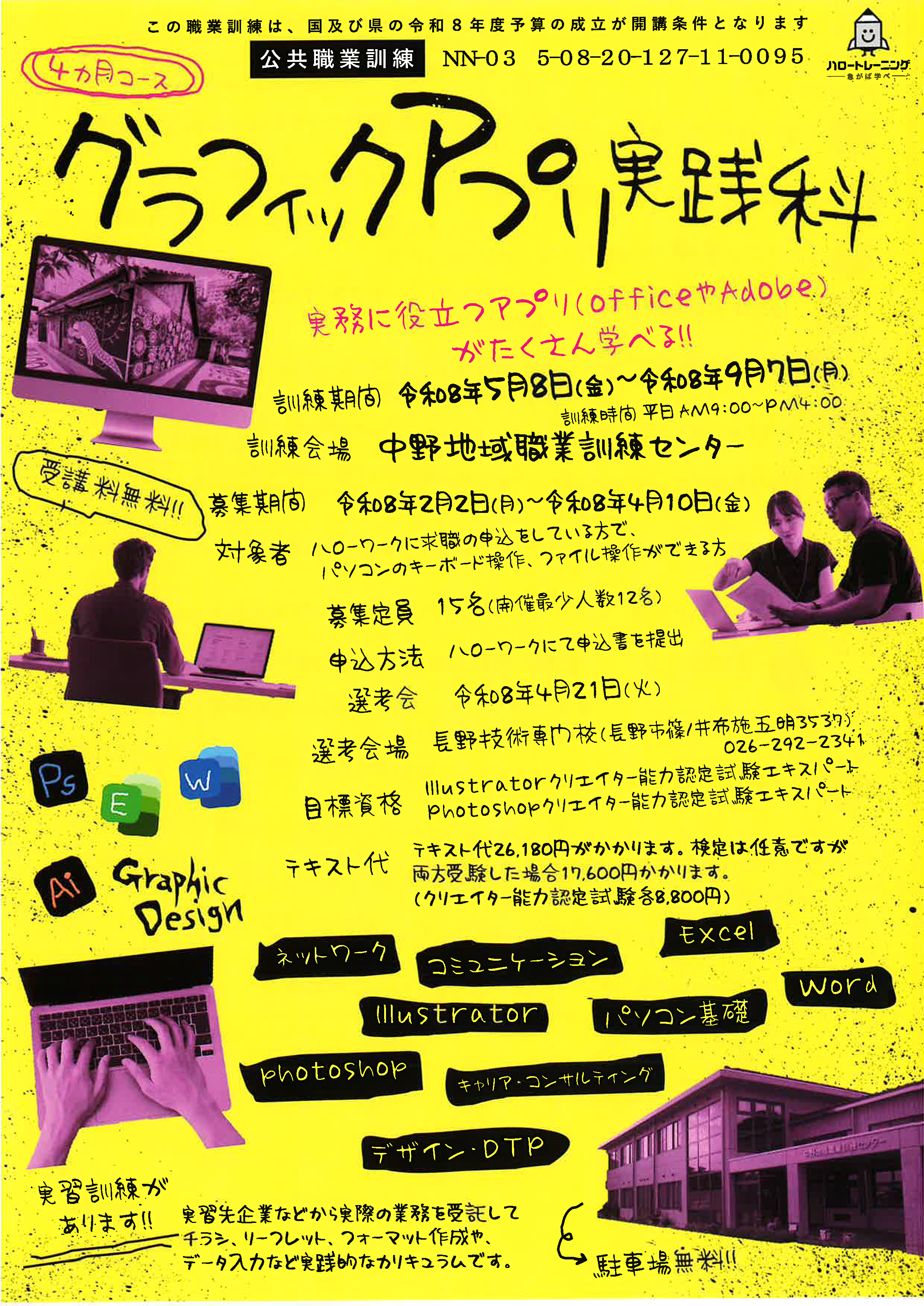 | グラフィックアプリ実践科(中野市)4/10締切 | Webデザインクリエイト実践科(岡谷市)4/14締切 | |