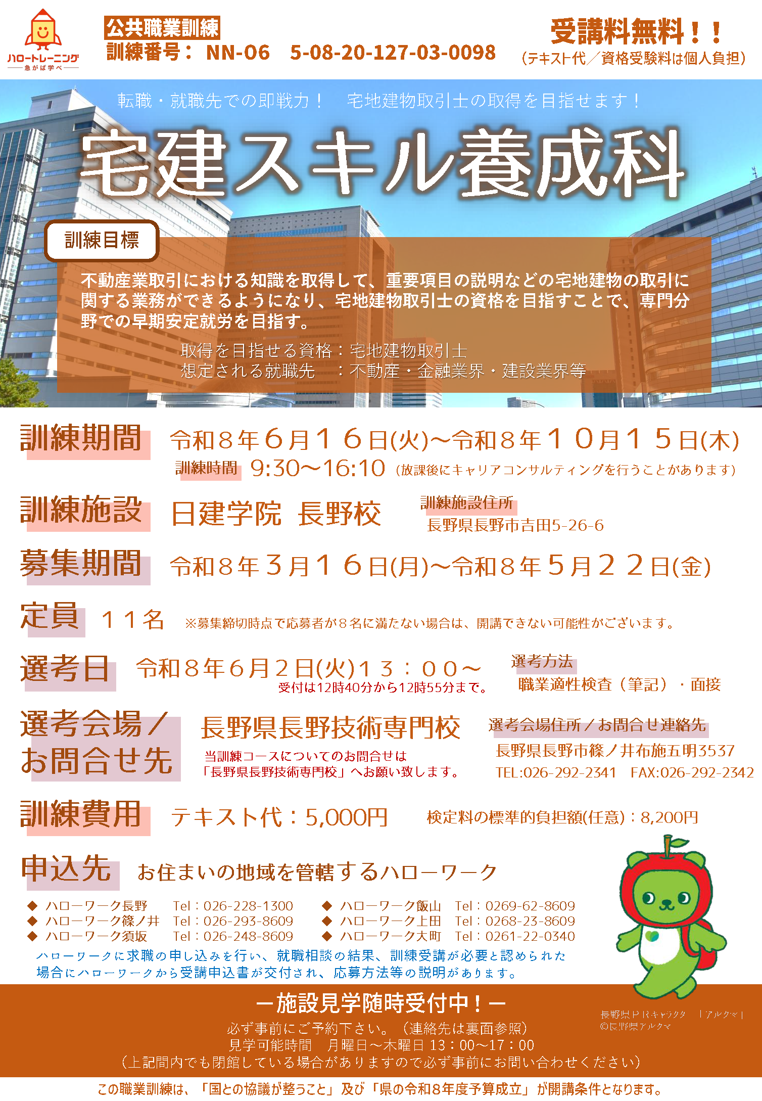 | 宅建スキル養成科(長野市)5/22締切 | ||