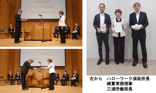 長野労働局(局長 三浦栄一郎)は、もにす認定企業として、社会福祉法人廣望会(理事長 納富廣幸)を認定し、令和7年9月18日に「障がい者雇用フォーラム」(長野県主催、長野労働局共催)において、認定通知書交付式を行いました。 「障害者雇用優良中小事業主認定(もにす認定)制度」とは、障害者の雇用の促進及び雇用の安定に関する取組の実施状況などが優良な中小事業主を厚生労働大臣が認定する制度です。 |