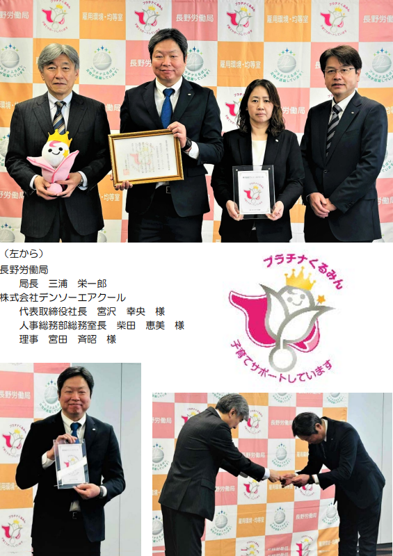 | 「子育てサポート企業」としてより高い水準でとりくむ「プラチナくるみん」の認定式を行いました(株式会社デンソーエアクール) | ||