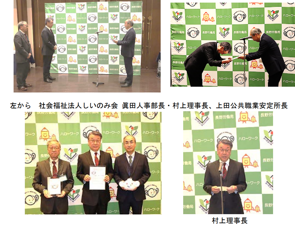 | 長野労働局(局長三浦栄一郎)は、もにす認定企業として、社会福祉法人うえだしいのみ会(理事長 村上恒夫)を認定し、令和8年3月2日に「信州上田地域合同就活フェア2026」(上田職業安定協会主催、上田公共職業安定所共催)において、認定通知書交付式を行いました。 「障害者雇用優良中小事業主認定(もにす認定)制度」とは、障害者の雇用の促進及び雇用の安定に関する取組の実施状況などが優良な中小事業主を厚生労働大臣が認定する制度です。 |