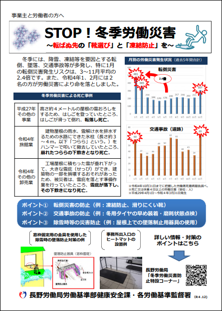 | 〇 | STOP! 冬季労働災害 ~冬季における転倒災害防止対策を実施しましょう~(岡谷労働基準監督署) |