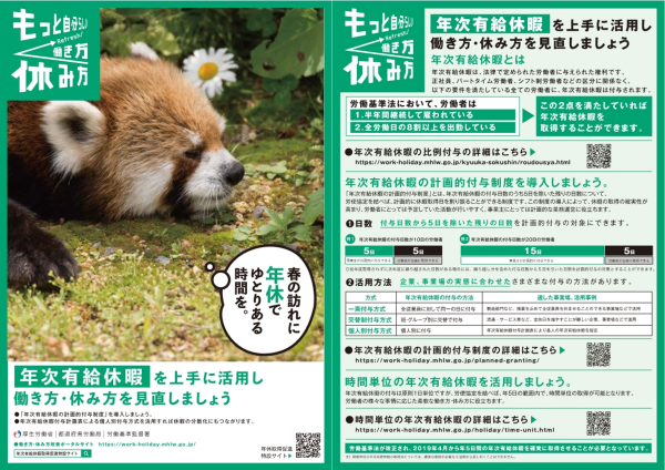 新しい働き方・休み方が始まっています ~年次有給休暇の計画的付与制度や時間単位の年次有給休暇制度を導入しましょう!~