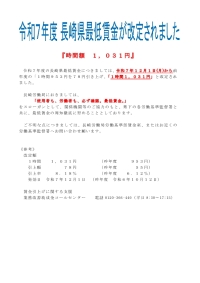 令和7年12月1日以降は、長崎県最低賃金1,031円が適用されます。 |
