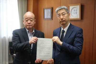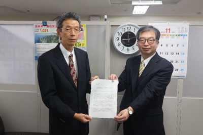 | (写真右)日本労働組合総連合会長崎県連合会 岩永会長 (写真左)倉永局長 |