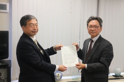 | (写真右)長崎経済同友会 山田副代表幹事 (写真左)倉永局長 |
