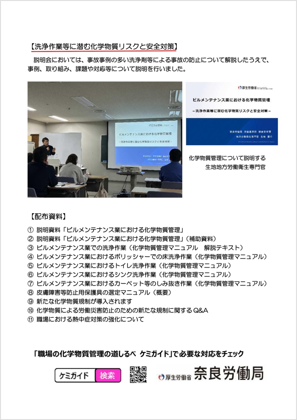 - ビルメンテナンス業における化学物質管理説明会を開催