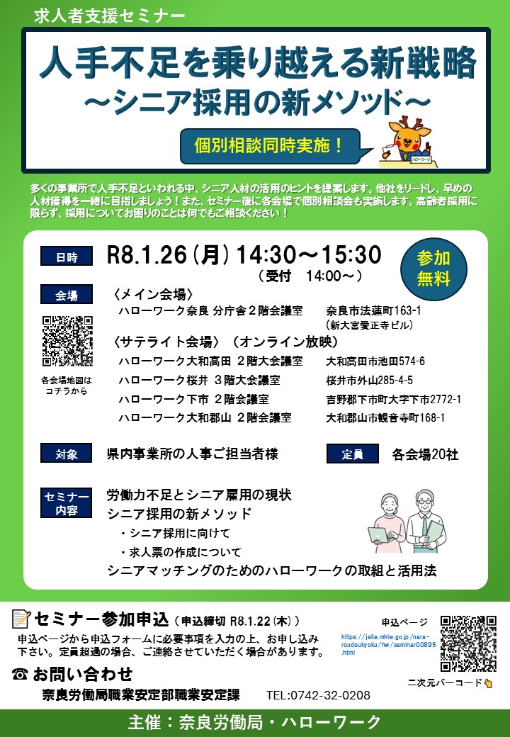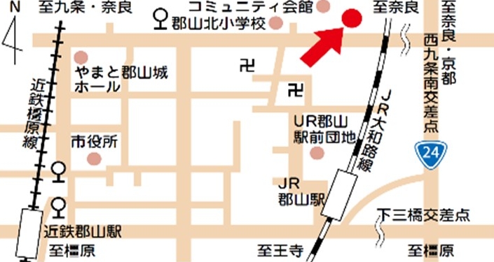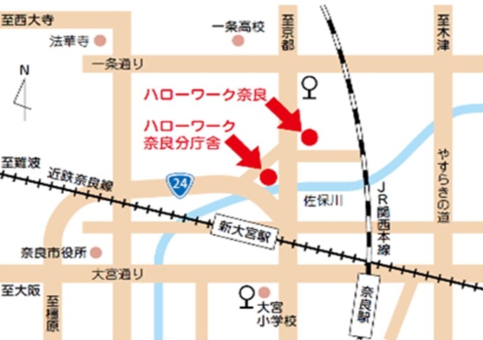 ※分庁舎には駐車場はございませんので、お車でお越しの方はハローワーク奈良本庁舎(奈良市法蓮町387)をご利用ください。