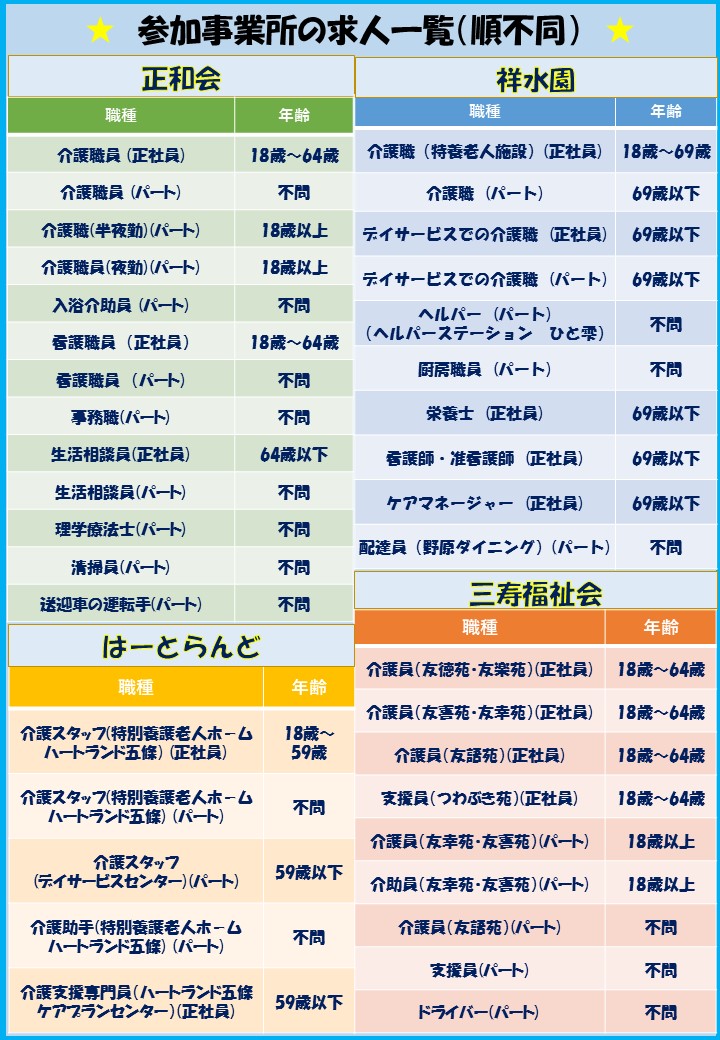 社会福祉法人 正和会 社会福祉法人 三寿福祉会 社会福祉法人 はーとらんど 社会福祉法人 祥水園