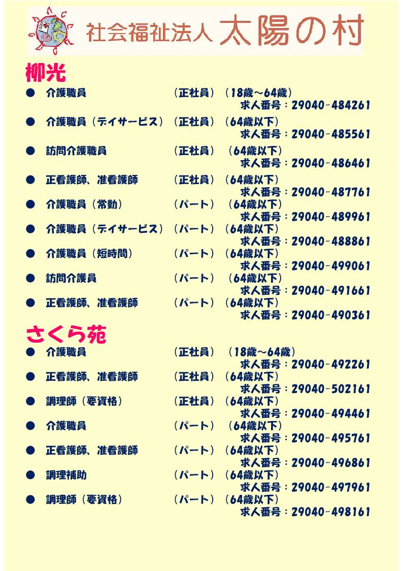 ・社会福祉法人太陽の村 (柳光、さくら苑)