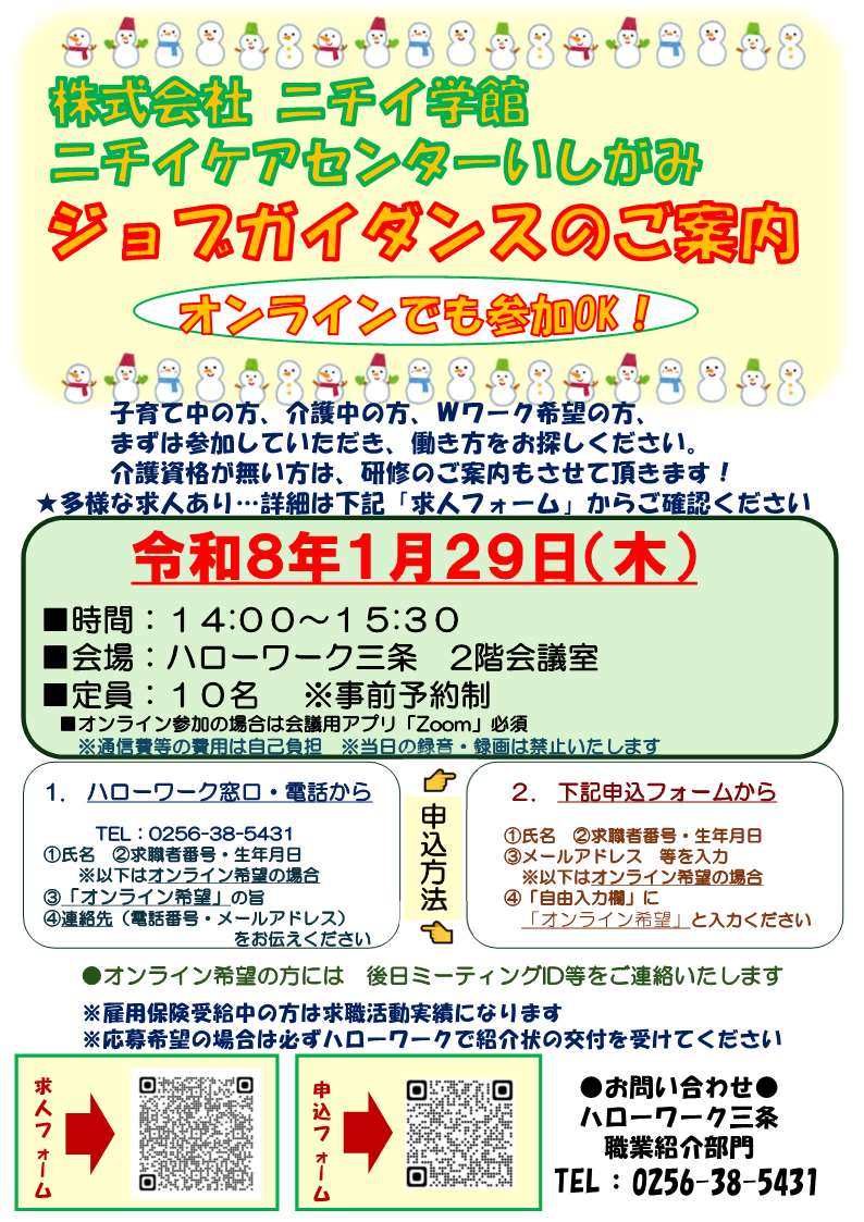 1月29日(木)★オンライン併用ジョブガイダンス★ ★介護施設のお仕事★