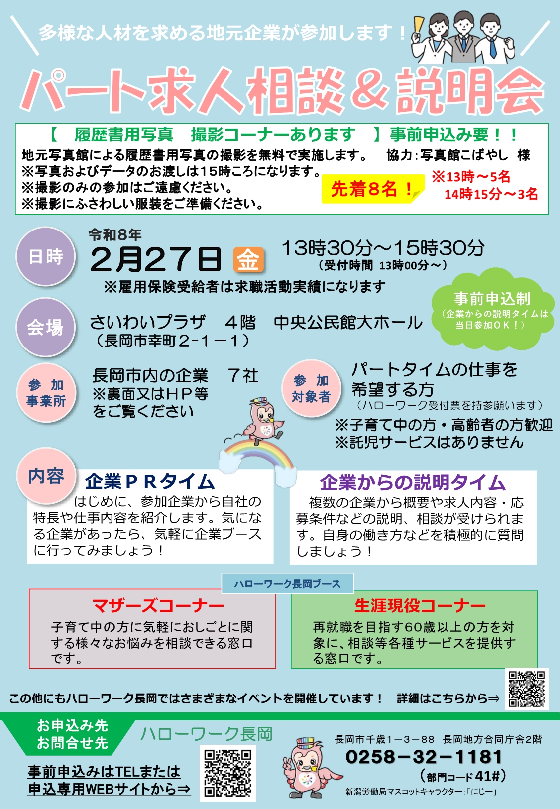 そのほか、ハローワーク長岡による「マザーズコーナー」「生涯現役コーナー」の相談ブースもあります!