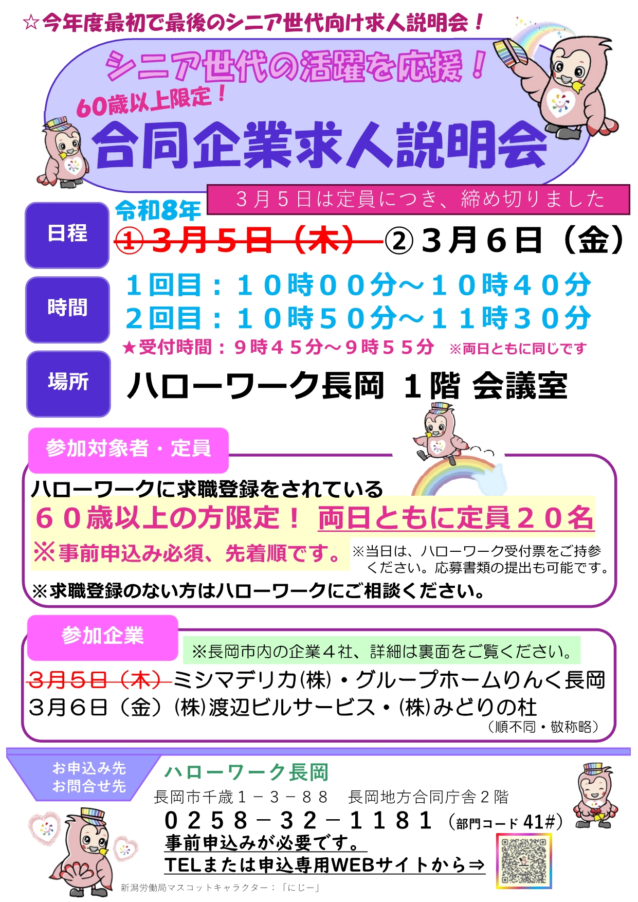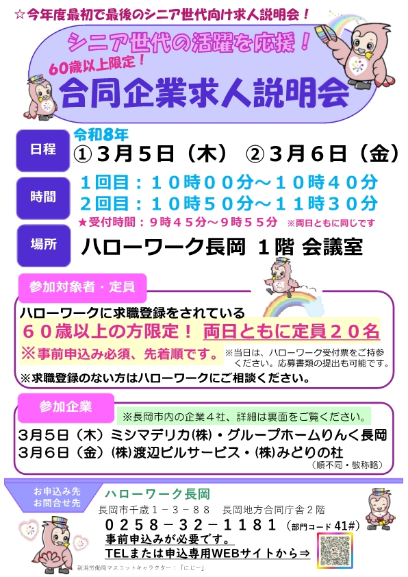 3月5日(木)・3月6日(金)60歳以上限定!合同企業求人説明会