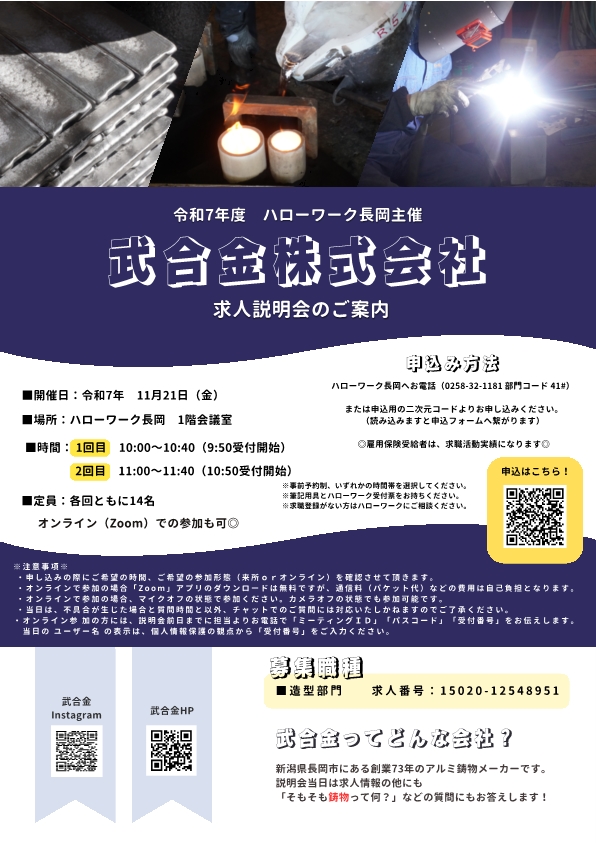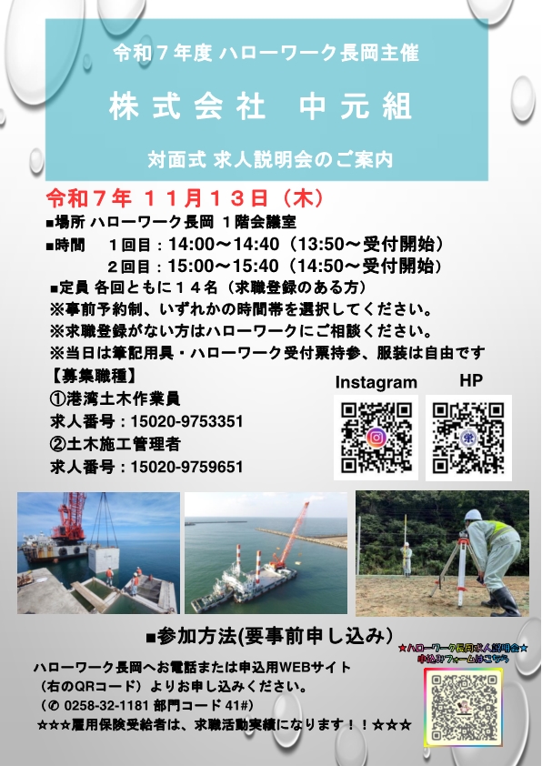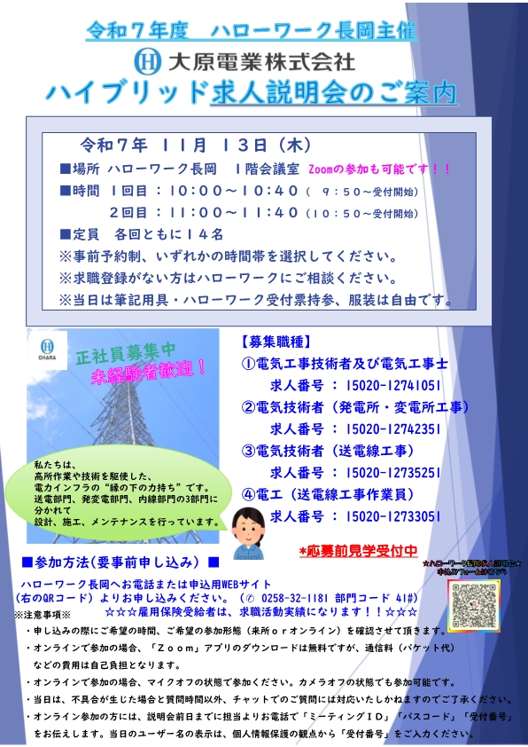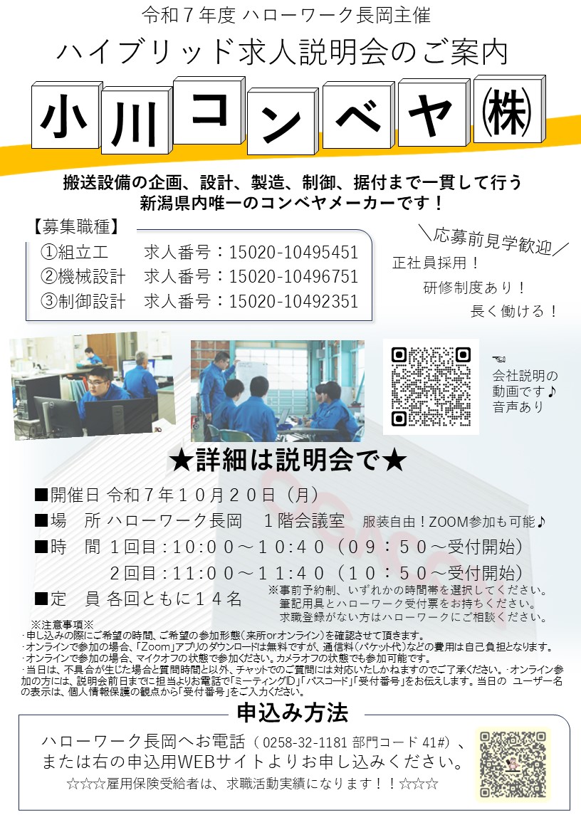 説明会参加後すぐに応募することも可能です!ハローワーク長岡職業紹介部門にご相談ください。