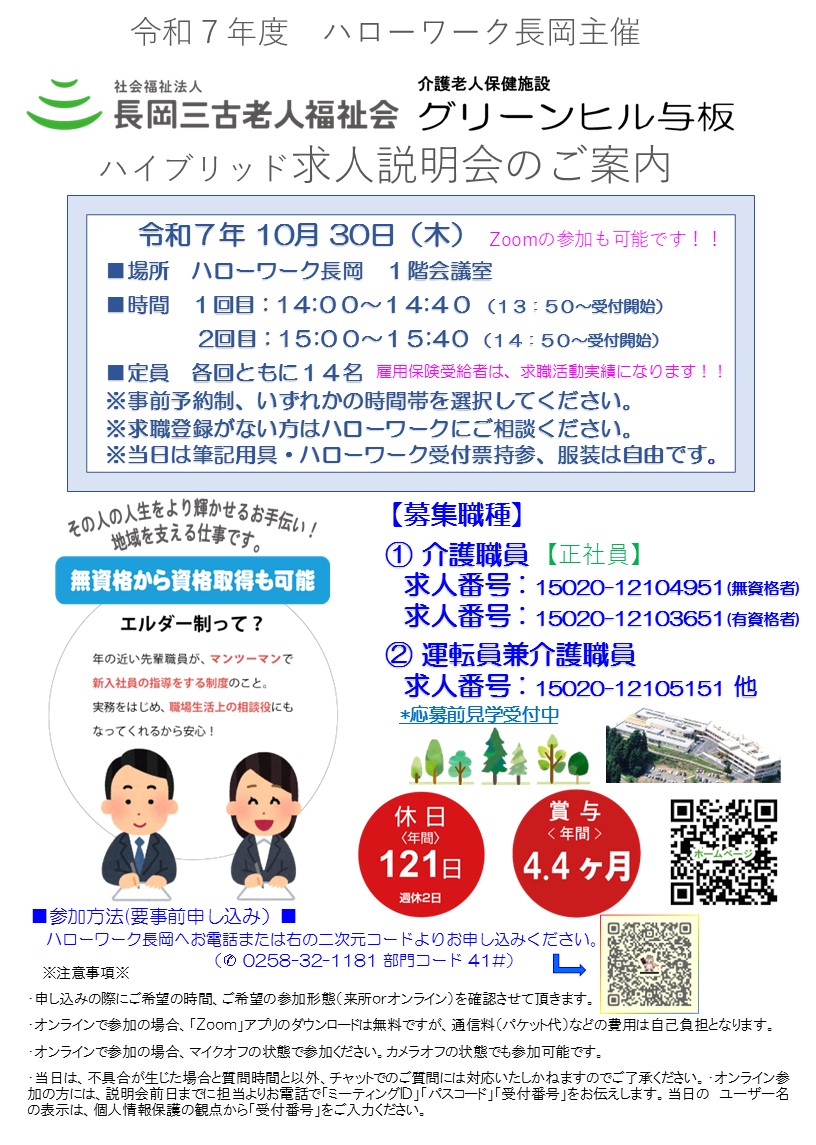 【対面・オンライン】社会福祉法人 長岡三古老人福祉会