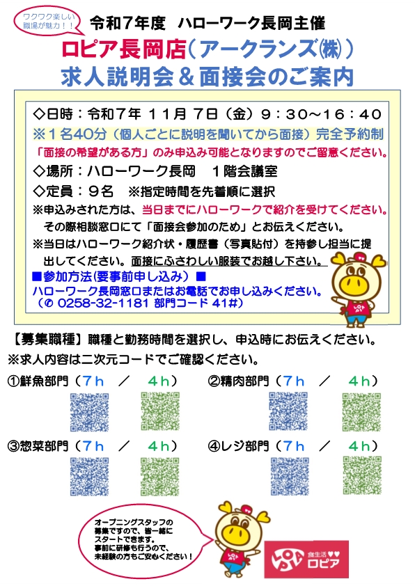【説明会&面接会】ロピア長岡店(アークランズ株式会社)