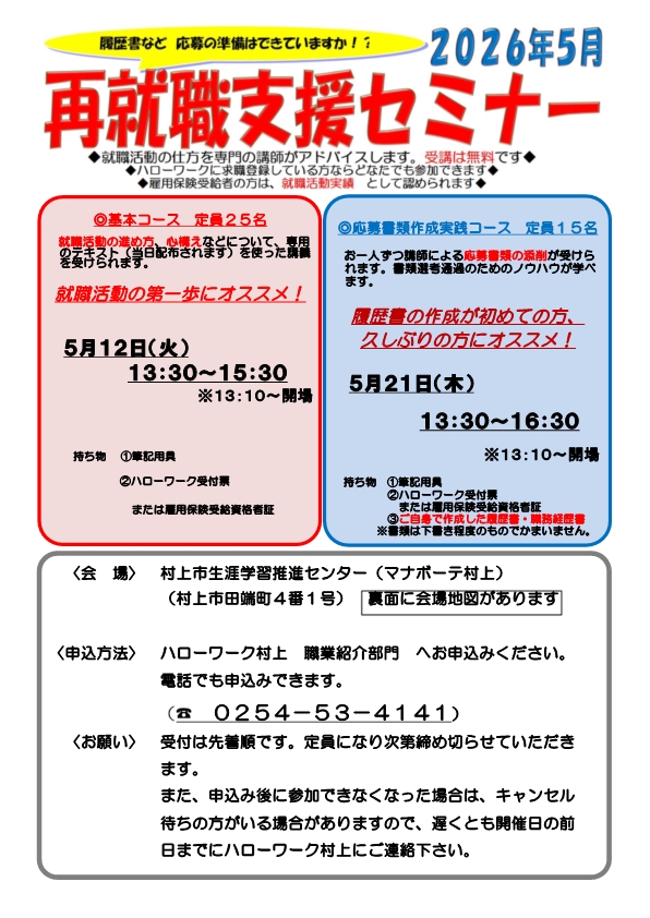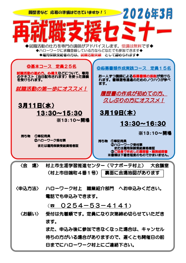 就職活動の準備として、「就職活動の進め方」「履歴書・職務経歴書の書き方」「面接の受け方」の基本を身に付けることができます。