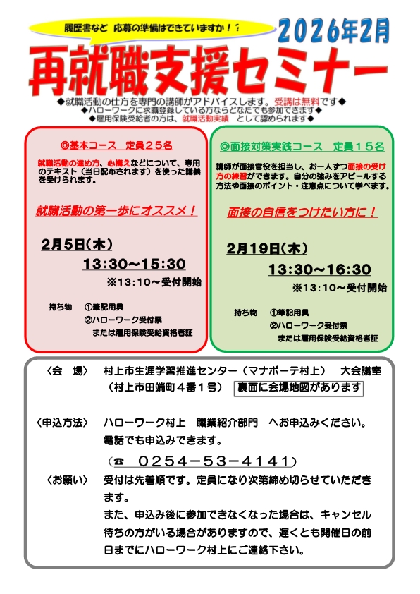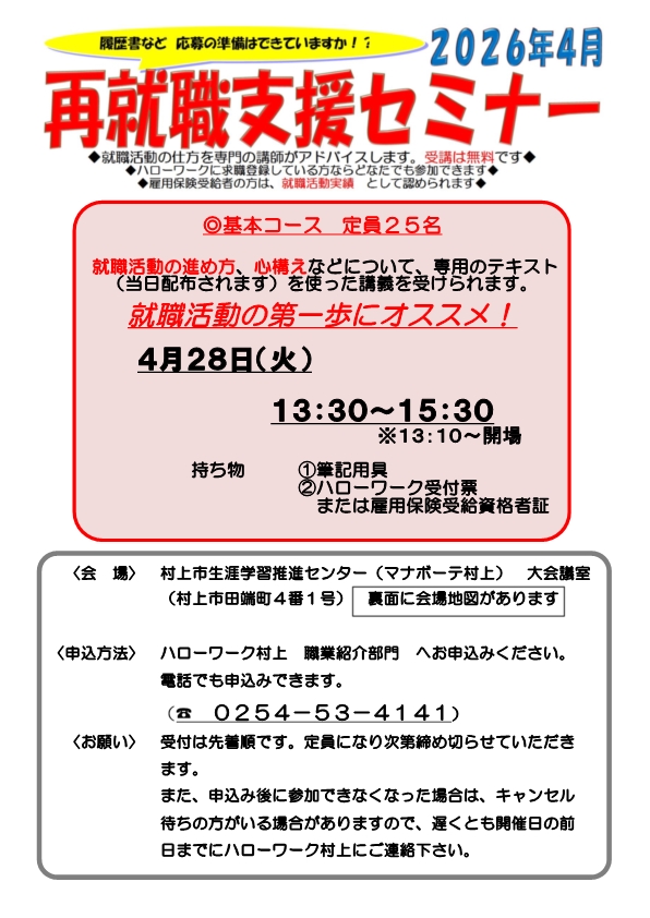 就職活動の準備として、「就職活動の進め方」「履歴書・職務経歴書の書き方」「面接の受け方」の基本を身に付けることができます。