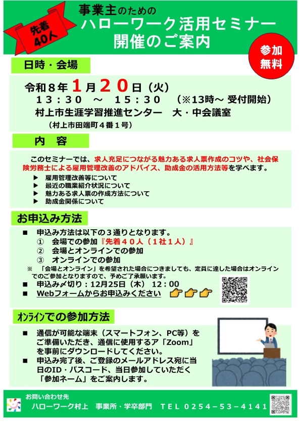 「事業主のためのハローワーク活用セミナー」を開催します!