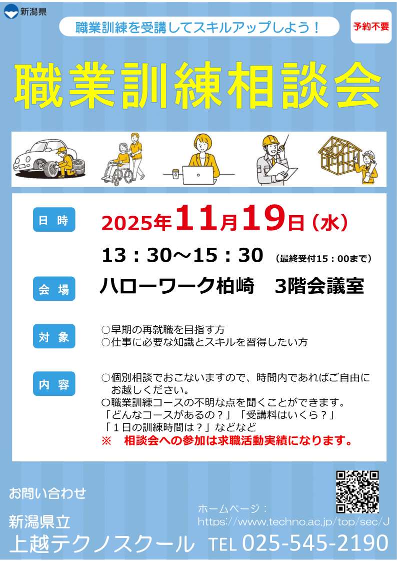 「職業訓練説明会」は、ハローワーク柏崎にて実施しております。