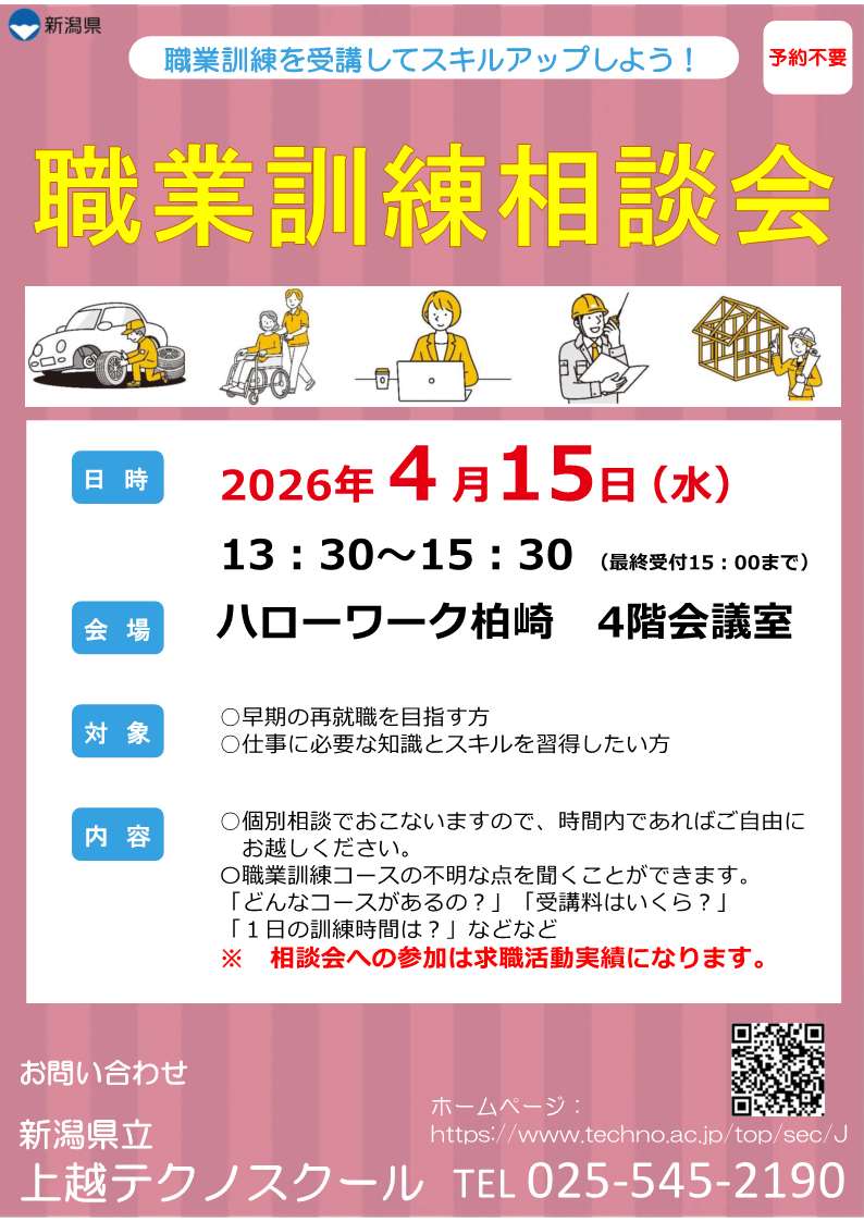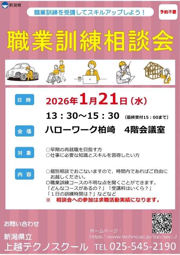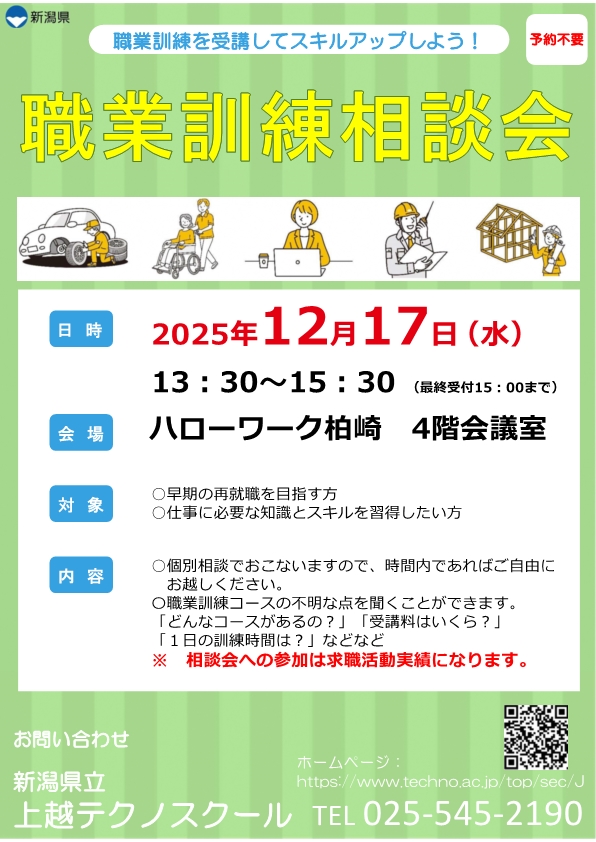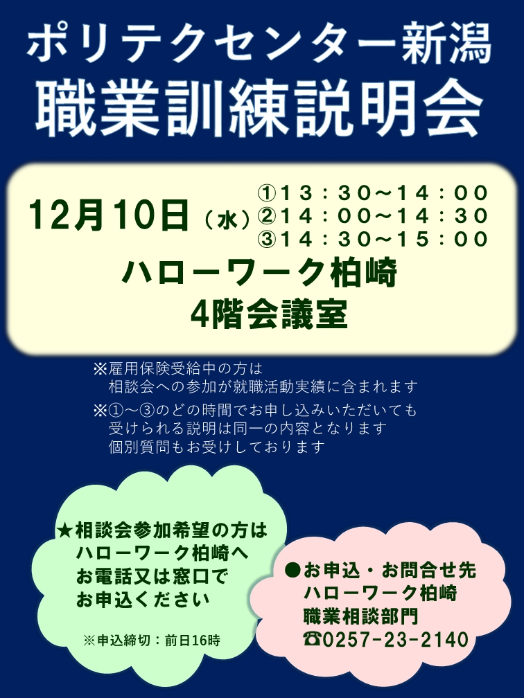 ⇒ハローワーク柏崎 訓練説明会のご案内をご確認ください。 -